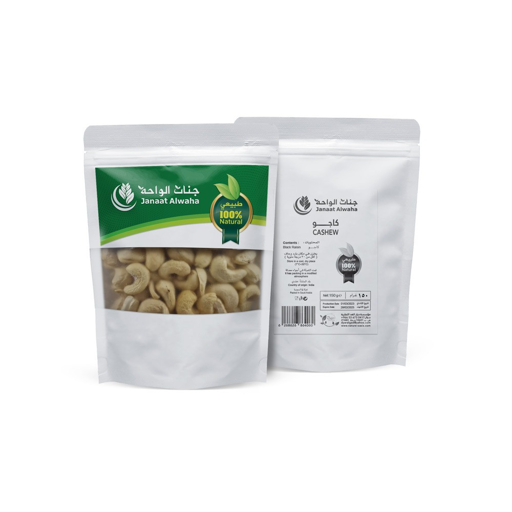 - يتم في جنات الواحة إنتاج هذا المنتج باحترافية عالية، حيث يتم اختيار أفضل أنواع الكاجو بعناية فائقة. حيث كل قطعة تمتاز بجودتها ونكهتها الفريدة.